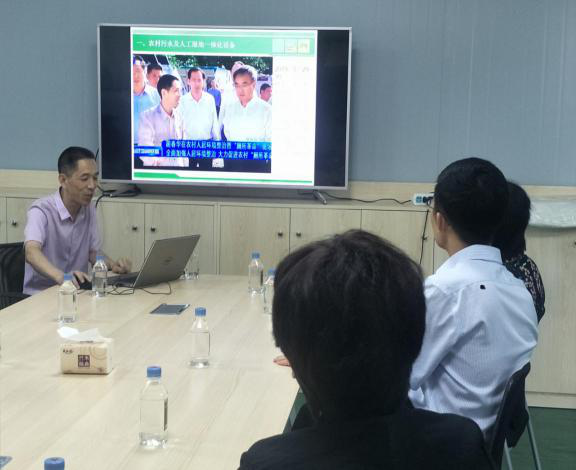 公司領導匯報水庫液位智能監測系統和分散一體化污水設備及中風光發電的運用